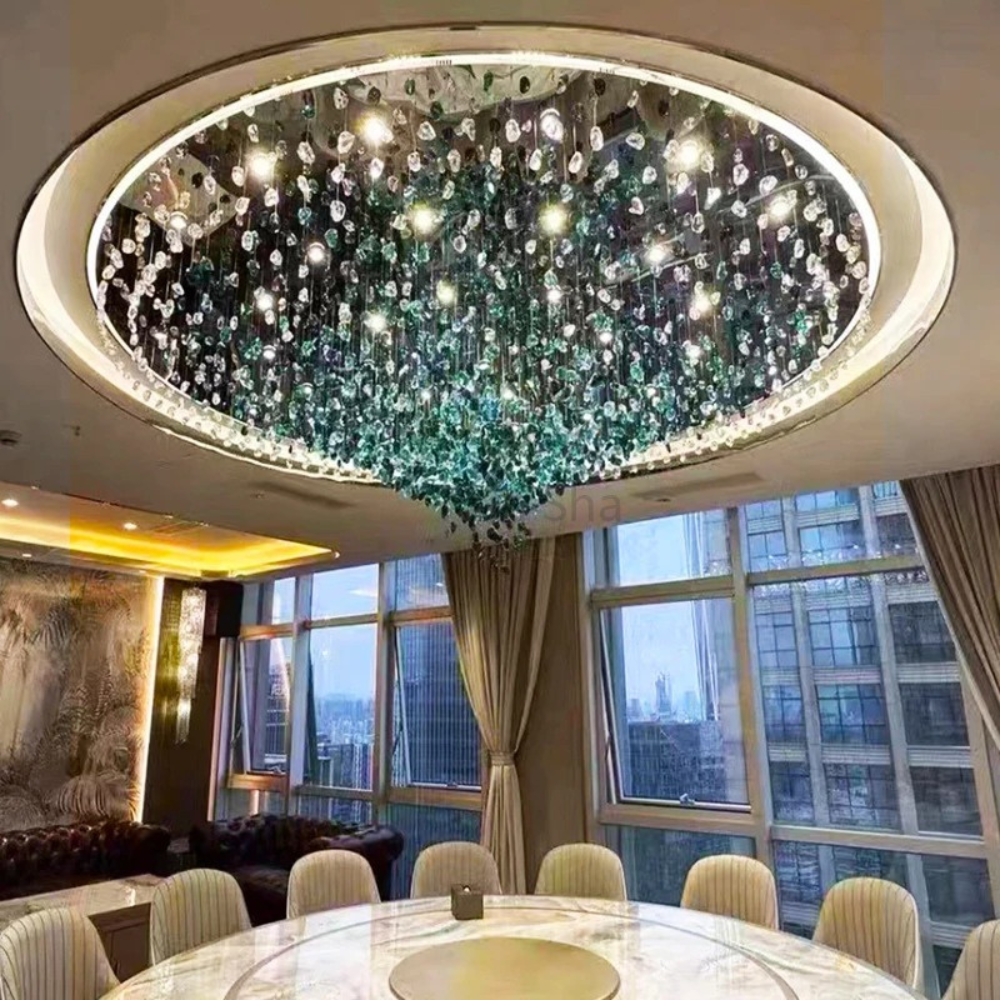 Verleihen Sie Ihrem Zuhause oder Geschäft einen luxuriösen Touch mit dieser einzigartigen Pendelleuchte. Ihre edlen, künstlerischen Steinglasformen in Blau, Rot und Grün schaffen eine faszinierende Atmosphäre und erwecken jeden Raum zu neuem Leben. Diese Leuchte ist nicht nur ein Lichtspender, sondern ein Kunstwerk, das Ihre Gäste begeistern wird. Perfekt für Hotels, Restaurants oder stilvolle Wohnräume, die nach einer außergewöhnlichen Beleuchtung suchen.