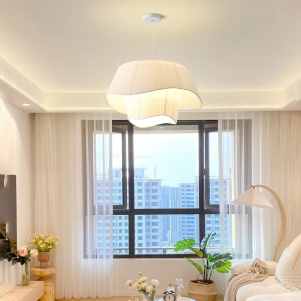 Mit dieser handgefertigten Stofflampe holen Sie sich nicht nur eine Lampe, sondern ein Statement für gutes Wohnen. Die Struktur des fein gewebten Stoffes sorgt für ein weiches, blendfreies Licht, das Ihre Räume in eine warme, einladende Atmosphäre taucht. Dank der minimalistischen Formgebung und der neutralen Farbwahl lässt sich der Kronleuchter harmonisch in jede Einrichtung integrieren – ob skandinavisch, modern oder klassisch.